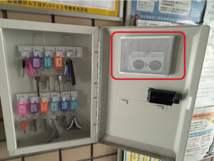 なお、キーボックスの番号は住民の方だけが分かるように定期的に配布されている「東会からのお知らせ」に記載しています。
