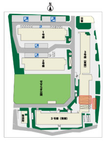 東会の自転車置場は、団地敷地内マップの赤い部分に指定されています。東会にお住まいの方は、必ずこのエリアに駐輪してください。自転車には、自治会から配布されるシールを目立つ位置(フレームやカゴなど)に貼り付けてください。シールのない自転車や、指定場所以外に駐輪された場合は、撤去対象となることがありますのでご注意ください。