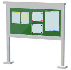住民所有の可能性があるため、エレベーターホールと北側階段出口の2箇所の掲示板にて警告を掲示します。掲示期間は1か月とします。