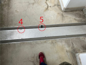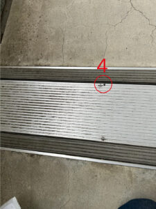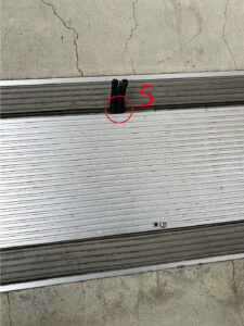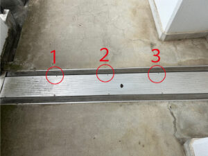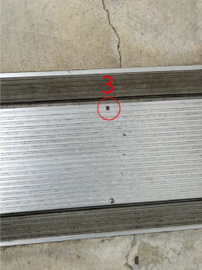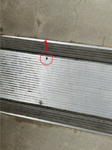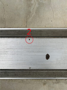 1〜3のビスが外れているためにプレートが固定されておらず、ずれる危険性がある。