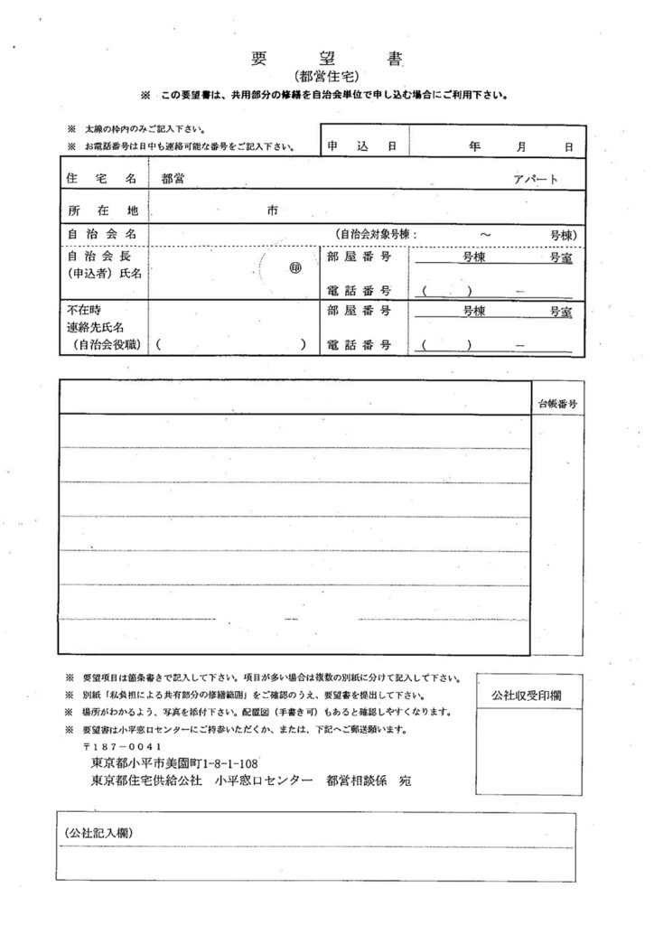 ■共用部分の修繕については、JKK東京お客さまセンターへご相談ください。