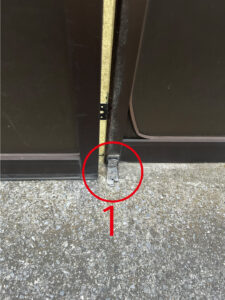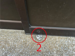 破損している扉と対になっている反対側の扉の金具「2」。これと同じ状態になるように修繕を依頼。